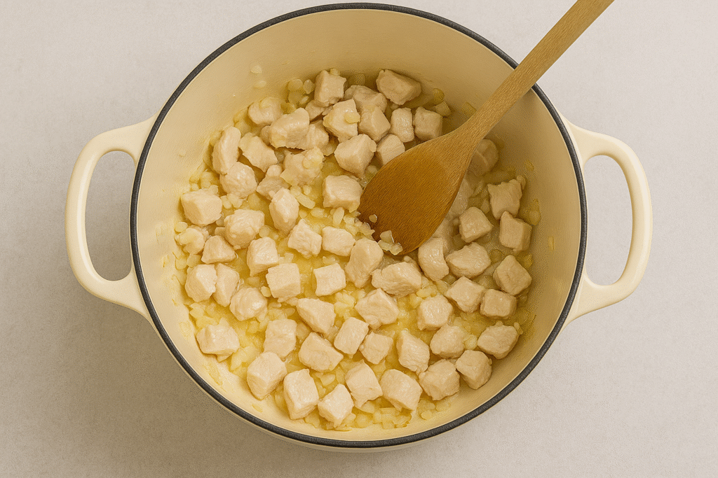 Heat olive oil in a large pot over medium heat. Sauté onions and garlic until translucent.
